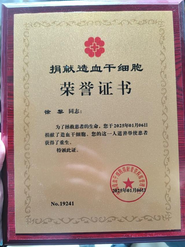 2025年的第一个周日随着空军特色医学中心造血干细胞采集室内血细胞分离机发出“嘀”的一声中国人民大学法学院刑法学博士生徐黎历时4小时顺利捐献造血干细胞混悬液400mL成为全国第19241例造血干细胞捐献者